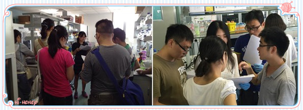 收集好血液樣本后, 每個小組根據protocol開始實驗操作,指導人員對關鍵步驟進行說明并進行演示,如加樣,溶紅,加抗體混勻,洗滌,避光孵育等步驟。