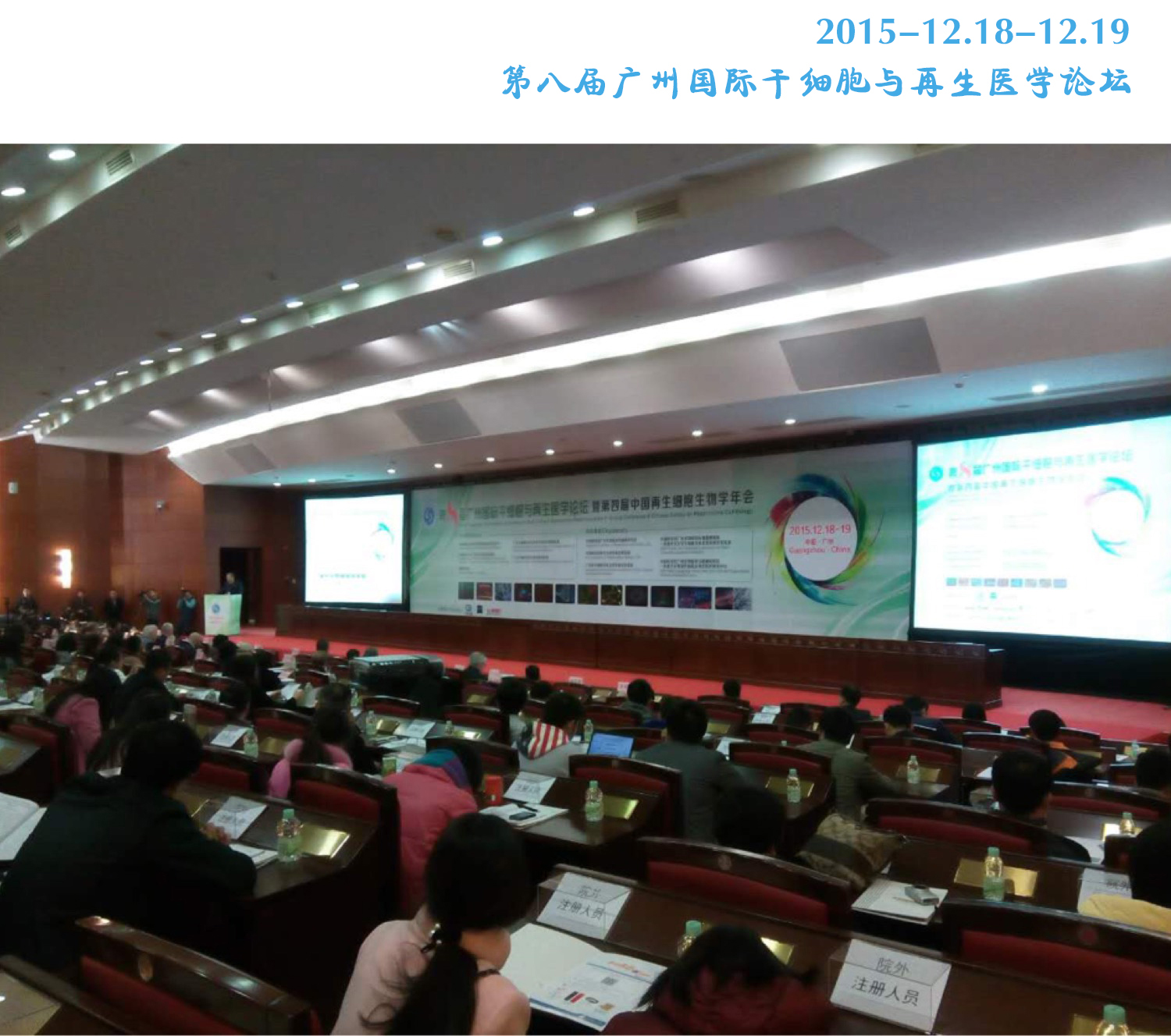 “第八屆廣州國際干細胞與再生醫學論壇”于2015年12月18日-19日在廣州白云國際會議中心4號樓1樓越秀華堂如期召開。本次大會邀請到了名譽主席中科院院士,同濟大學校長裴剛教授致辭,以及2015新增中國科學院院士、中科院動物所副所長周琪教授來做作報告,同時還邀請到了法國國家科學研究中心jean paul thiery教授、劍橋大學patrick maxwell教授,以色列魏茲曼科學中心jacob hanna等外國專家教授來作報告,參會人數達200多人。