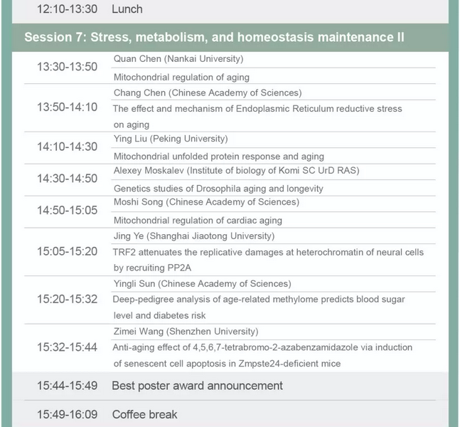 主辦:中國細胞生物學學會衰老細胞生物學分會