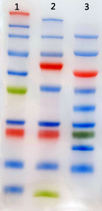 預染蛋白Marker是將幾種純化好的蛋白,與染料共價偶聯后混合而成。預染蛋白Marker的出現方便我們在電泳時、電泳后以及轉膜后檢測電泳情況和估計遷移率,是做WesternBlot最常用到的蛋白Marker。