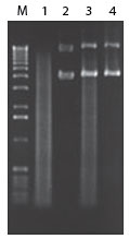 泳道3:Plasmid-Safe? DNase處理前,3ug的消化的染色體DNA和500ng未消化的質(zhì)粒DNA;